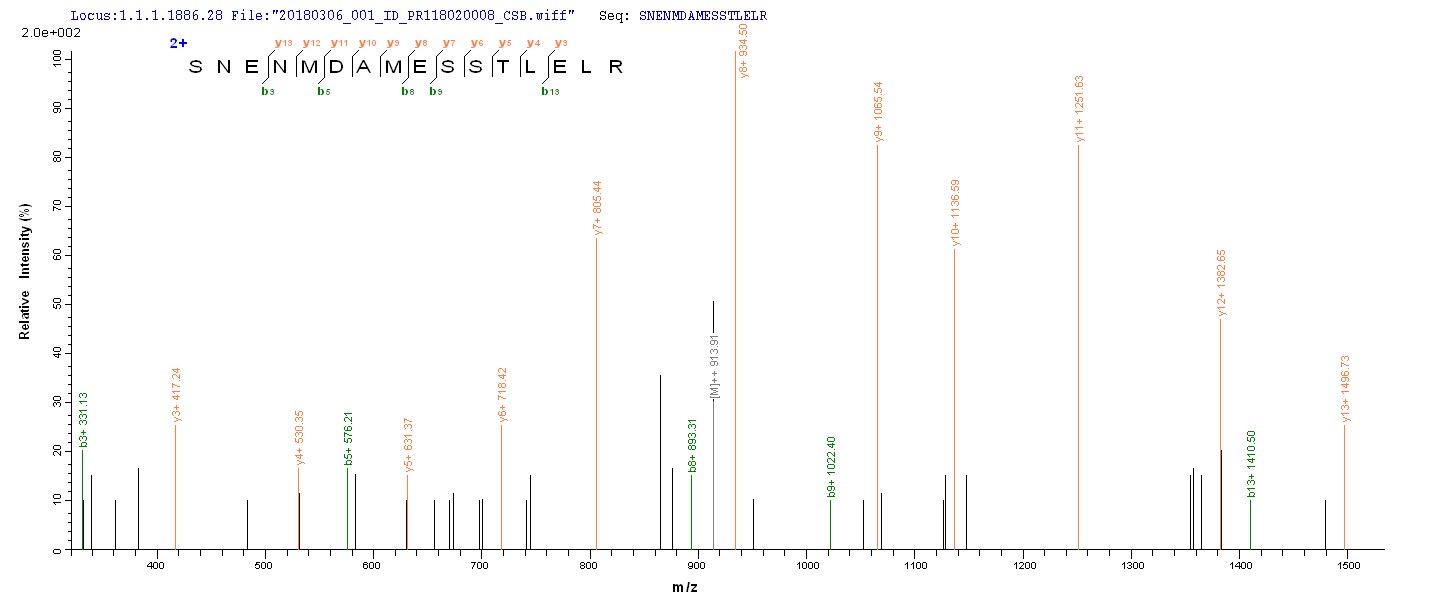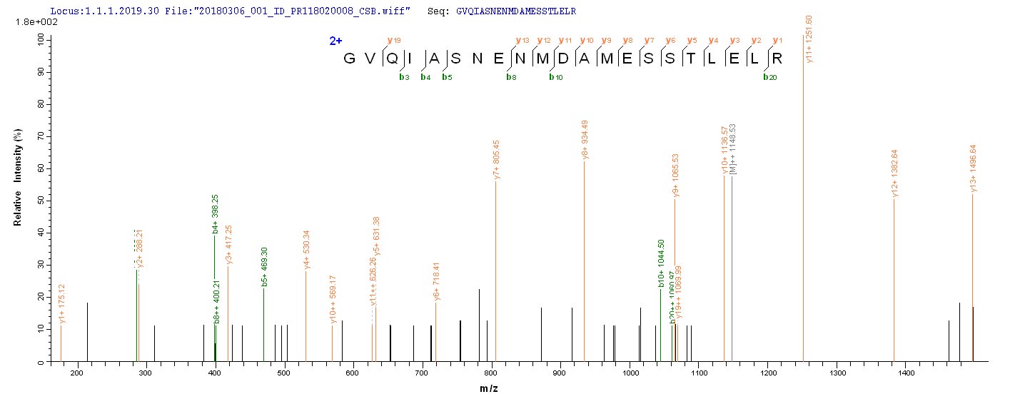 Based on the SEQUEST from database of E.coli host and target protein, the LC-MS/MS Analysis result of CSB-EP324412IES could indicate that this peptide derived from E.coli-expressed Influenza A virus (strain A/Hong Kong/1/1968 H3N2) NP.