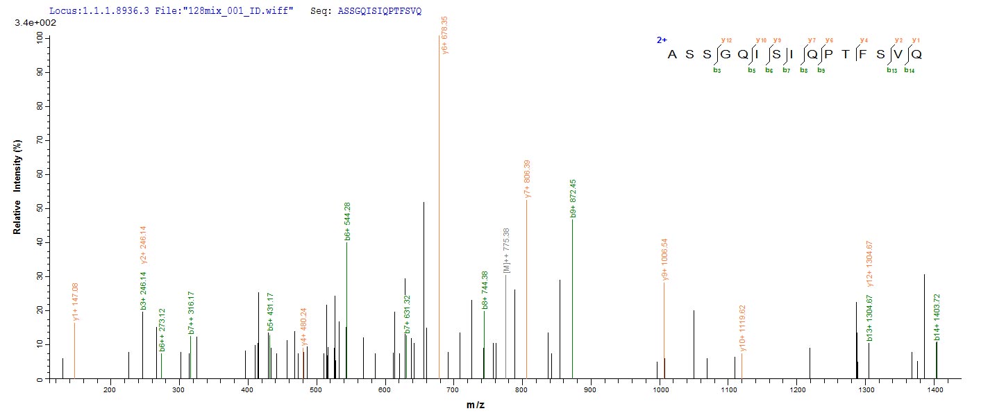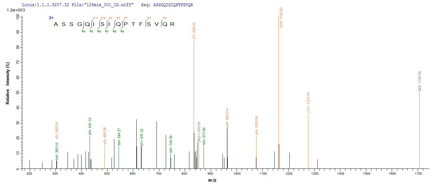 Based on the SEQUEST from database of E.coli host and target protein, the LC-MS/MS Analysis result of CSB-EP325769IIM could indicate that this peptide derived from E.coli-expressed Influenza A virus (strain A/Wilson-Smith/1933 H1N1) NP.