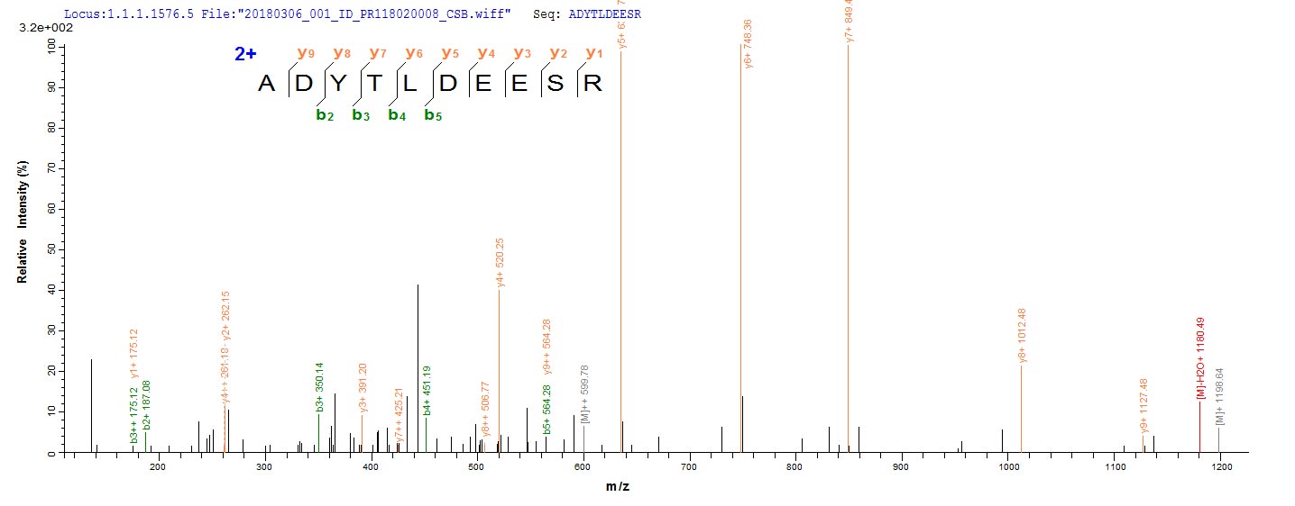 Based on the SEQUEST from database of E.coli host and target protein, the LC-MS/MS Analysis result of CSB-EP881268IIO could indicate that this peptide derived from E.coli-expressed Influenza A virus (strain A/x-31 H3N2) PA.