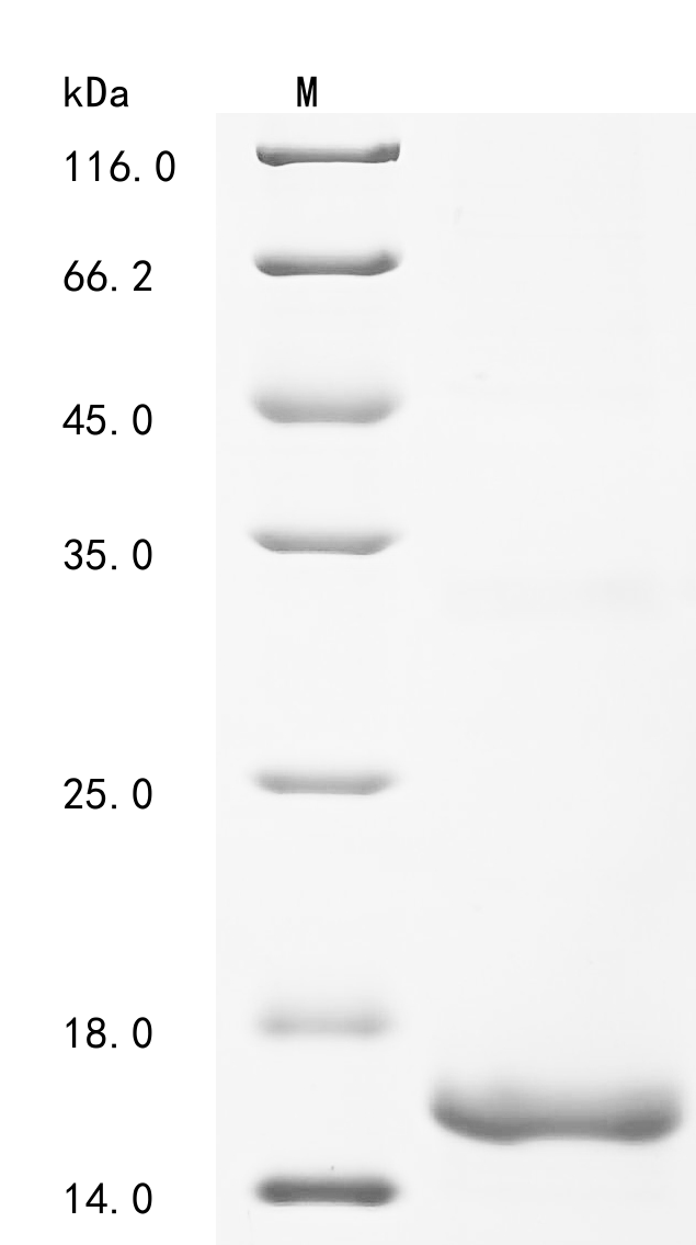 復(fù)溶:We recommend that this vial be briefly centrifuged prior to opening to bring the contents to the bottom. Please reconstitute protein in deionized sterile water to a concentration of 0.1-1.0 mg/mL.We recommend to add 5-50% of glycerol (final concentration) and aliquot for long-term storage at -20℃/-80℃. Our default final concentration of glycerol is 50%. Customers could use it as reference.