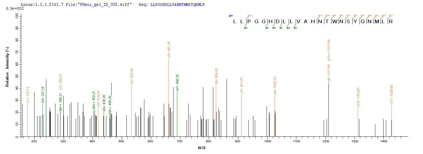 Based on the SEQUEST from database of Mammalian Cell host and target protein, the LC-MS/MS Analysis result of CSB-MP663623MO could indicate that this peptide derived from Mammalian Cell-expressed Mus musculus (Mouse) Plbd2.