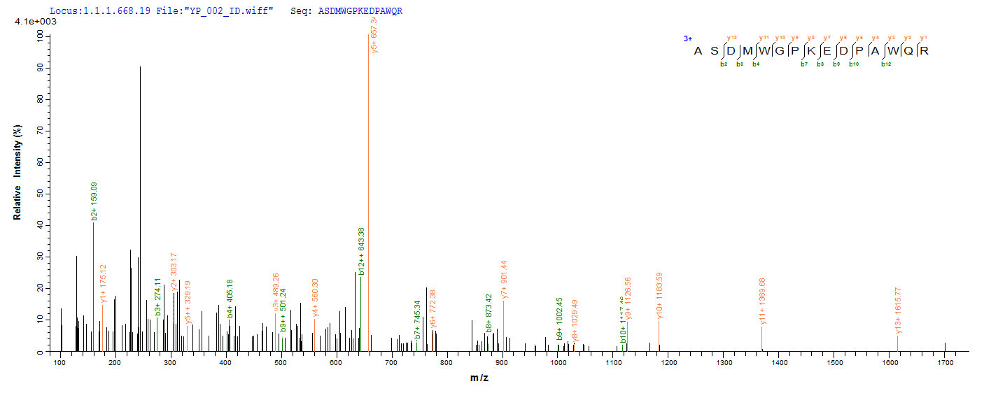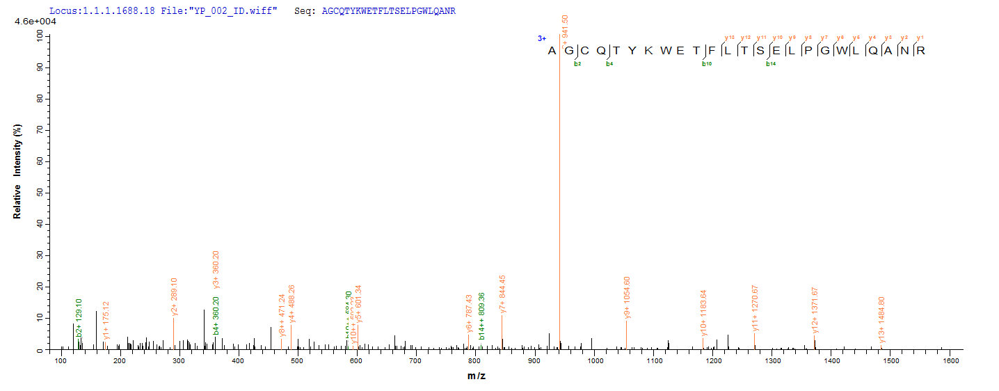 Based on the SEQUEST from database of E.coli host and target protein, the LC-MS/MS Analysis result of CSB-RP182794Ba could indicate that this peptide derived from E.coli-expressed Mycobacterium tuberculosis fbpA.