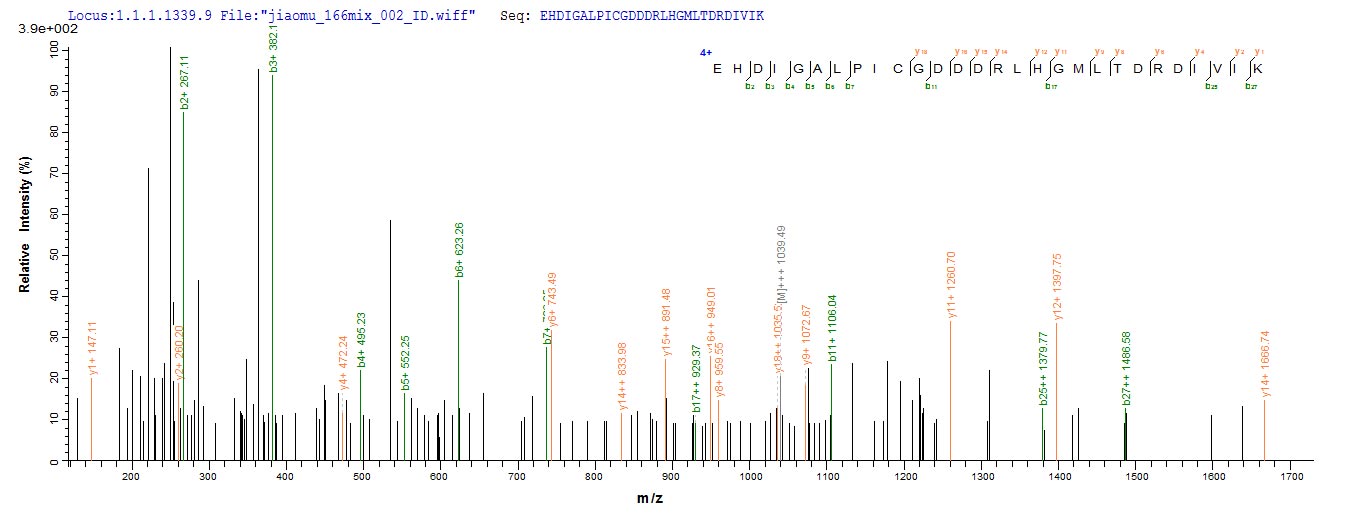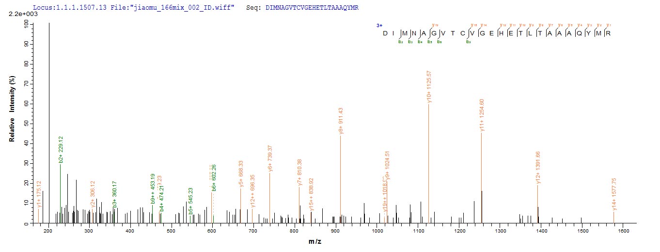 Based on the SEQUEST from database of E.coli host and target protein, the LC-MS/MS Analysis result of CSB-EP516950MVZ could indicate that this peptide derived from E.coli-expressed Mycobacterium tuberculosis (strain ATCC 25618 / H37Rv) hrp1.