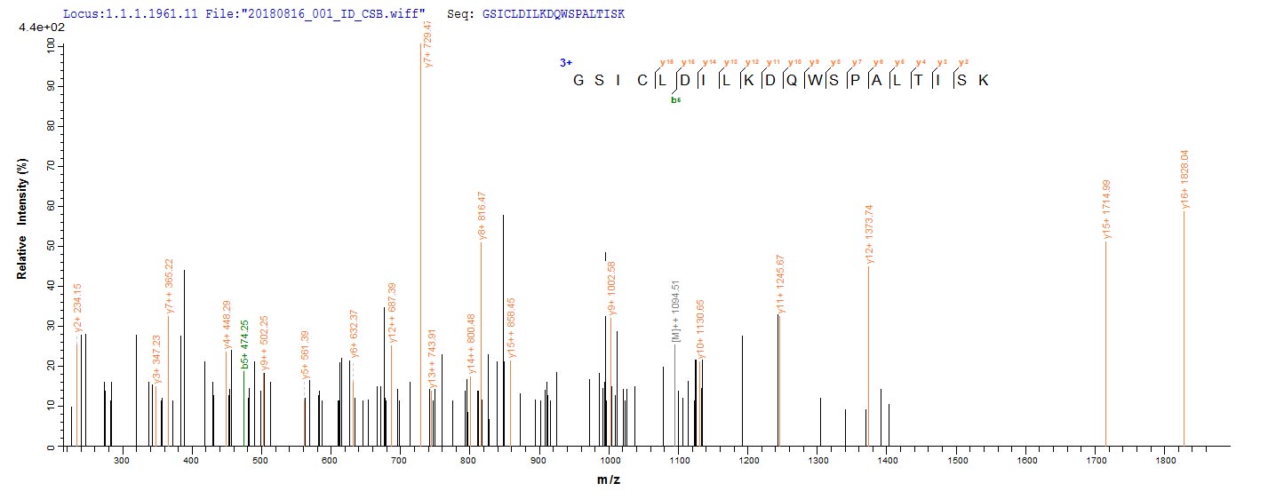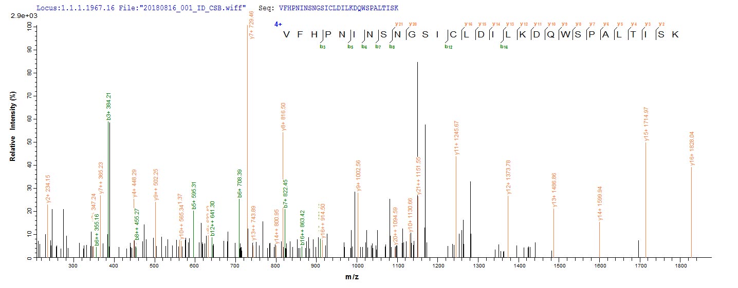 Based on the SEQUEST from database of E.coli host and target protein, the LC-MS/MS Analysis result of CSB-EP848293OFG could indicate that this peptide derived from E.coli-expressed Oryza sativa subsp. japonica (Rice) UBC5A.