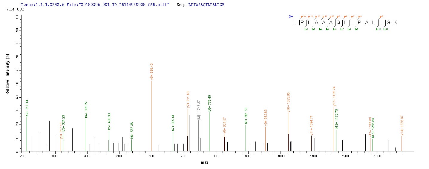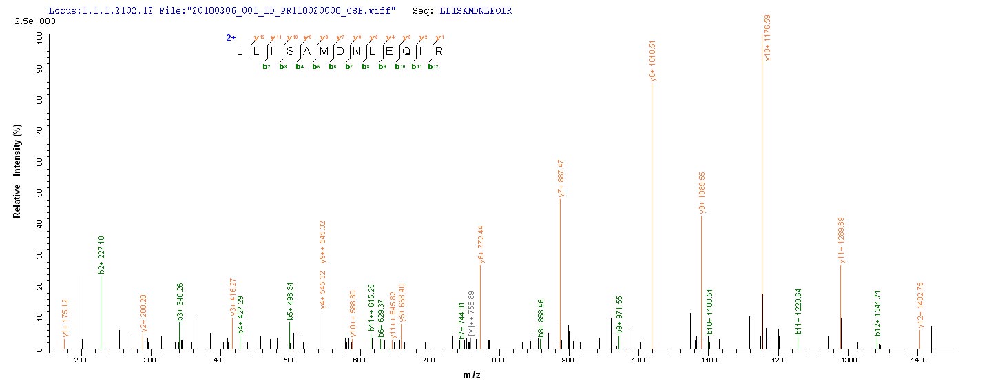 Based on the SEQUEST from database of Yeast host and target protein, the LC-MS/MS Analysis result of CSB-YP023317PI could indicate that this peptide derived from Yeast-expressed Sus scrofa (Pig) TCN1.