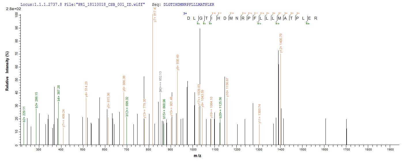 Based on the SEQUEST from database of Mammalian Cell host and target protein, the LC-MS/MS Analysis result of CSB-MP023446RA could indicate that this peptide derived from Mammalian Cell-expressed Rattus norvegicus (Rat) Tgfb1.