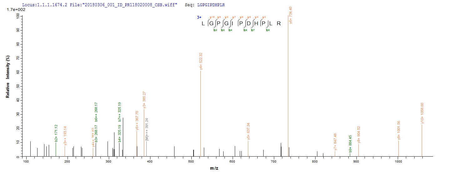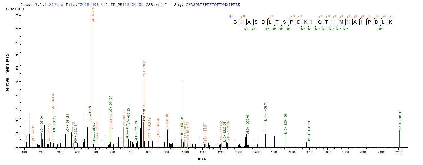 Based on the SEQUEST from database of E.coli host and target protein, the LC-MS/MS Analysis result of CSB-EP810348RCJ could indicate that this peptide derived from E.coli-expressed Reston ebolavirus (strain Reston-89) (REBOV) (Reston Ebola virus) VP40.