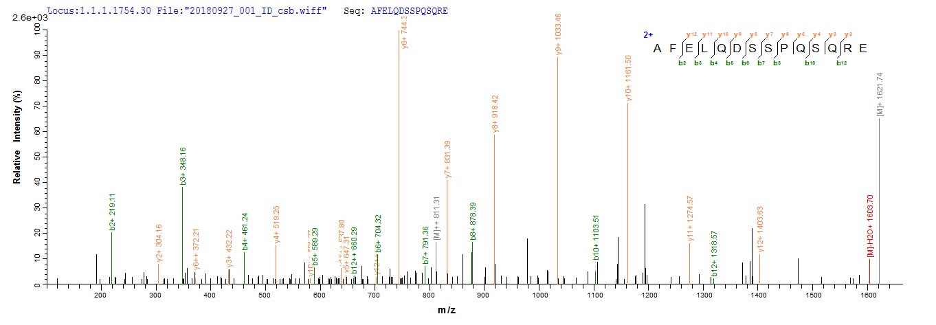Based on the SEQUEST from database of E.coli host and target protein, the LC-MS/MS Analysis result of CSB-EP841983RCIa2 could indicate that this peptide derived from E.coli-expressed Reston ebolavirus (strain Philippines-96) (REBOV) (Reston Ebola virus) NP.