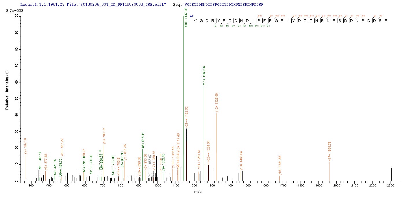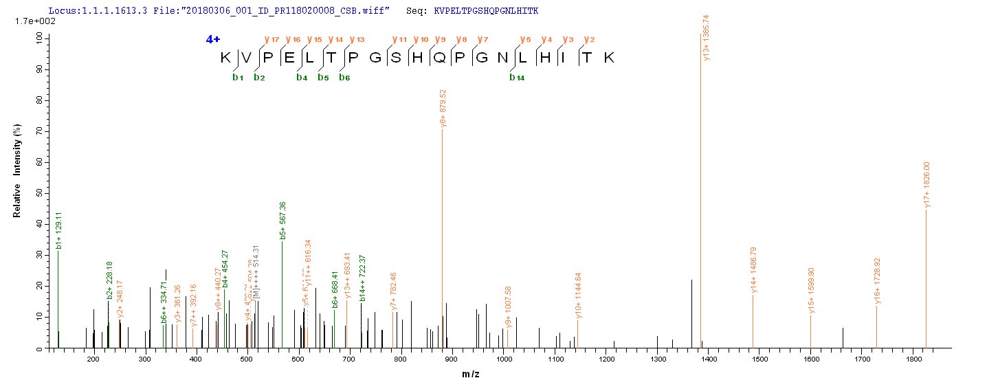 Based on the SEQUEST from database of E.coli host and target protein, the LC-MS/MS Analysis result of CSB-EP882531SRC could indicate that this peptide derived from E.coli-expressed Sudan ebolavirus (strain Boniface-76) (SEBOV) (Sudan Ebola virus) NP.