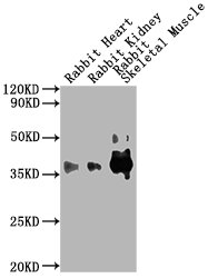 Positive WB detected in: Rabbit heart tissue, Rabbit kidney tissue, Rabbit muscle tissue