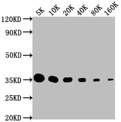 All lanes: HA-Tag antibody at 1:5000, 1:10000, 1:20000, 1:40000, 1:80000, 1:160000