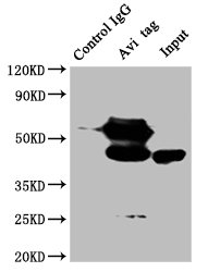 Positive WB detected in: 50ng Recombinant protein with Avi tag from E.coli and Mammalian cell All lanes: Avi tag antibody at 1:1000
