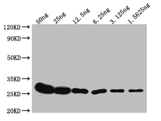 Positive WB detected in: Recombinant protein with GST tag from E.coli at 50ng, 25ng, 12.5ng, 6.25ng, 3.125ng, 1.5625ng
