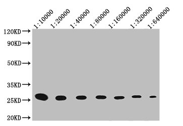 GST antibody at 1:10000, 1:20000, 1:40000, 1:80000, 1:160000, 1:320000, 1:640000