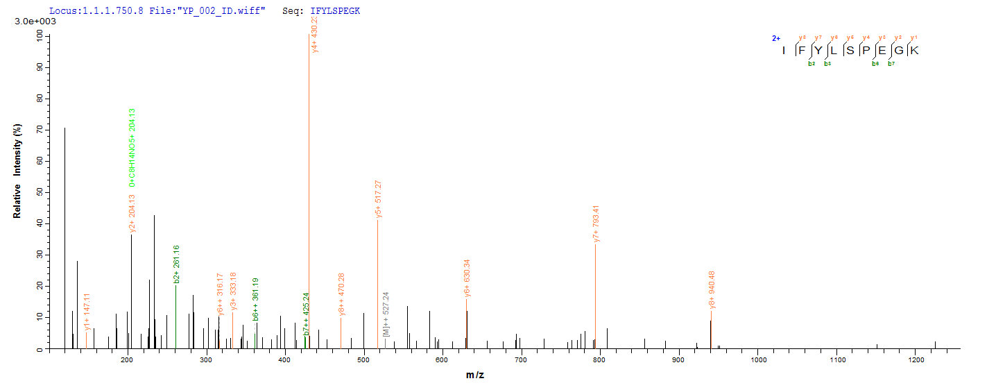 Based on the SEQUEST from database of E.coli host and target protein, the LC-MS/MS Analysis result of CSB-CF021762HU could indicate that this peptide derived from E.coli-expressed Homo sapiens (Human) SLFN12L.