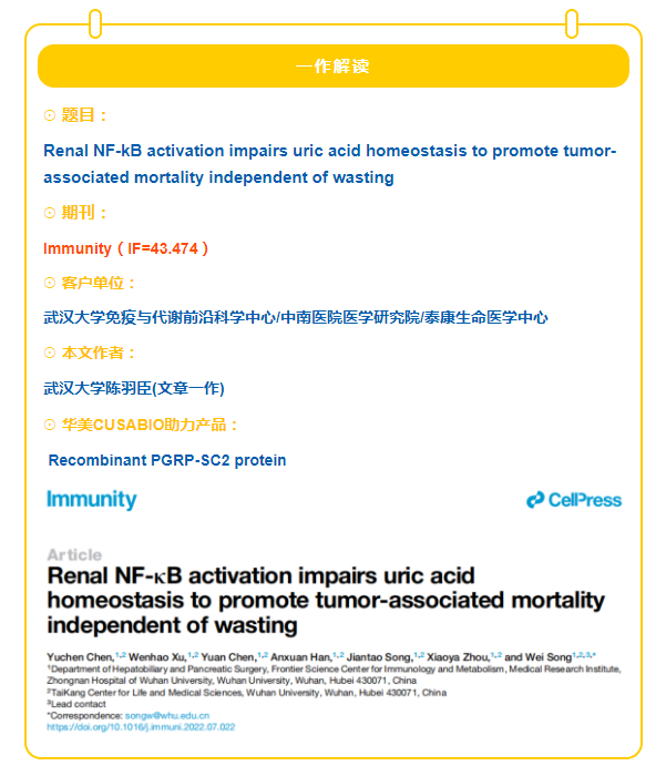 IF=43.474!Immunity|宋威團(tuán)隊揭示癌癥惡液質(zhì)的致病機(jī)理:腸道-腎臟免疫軸和尿酸代謝