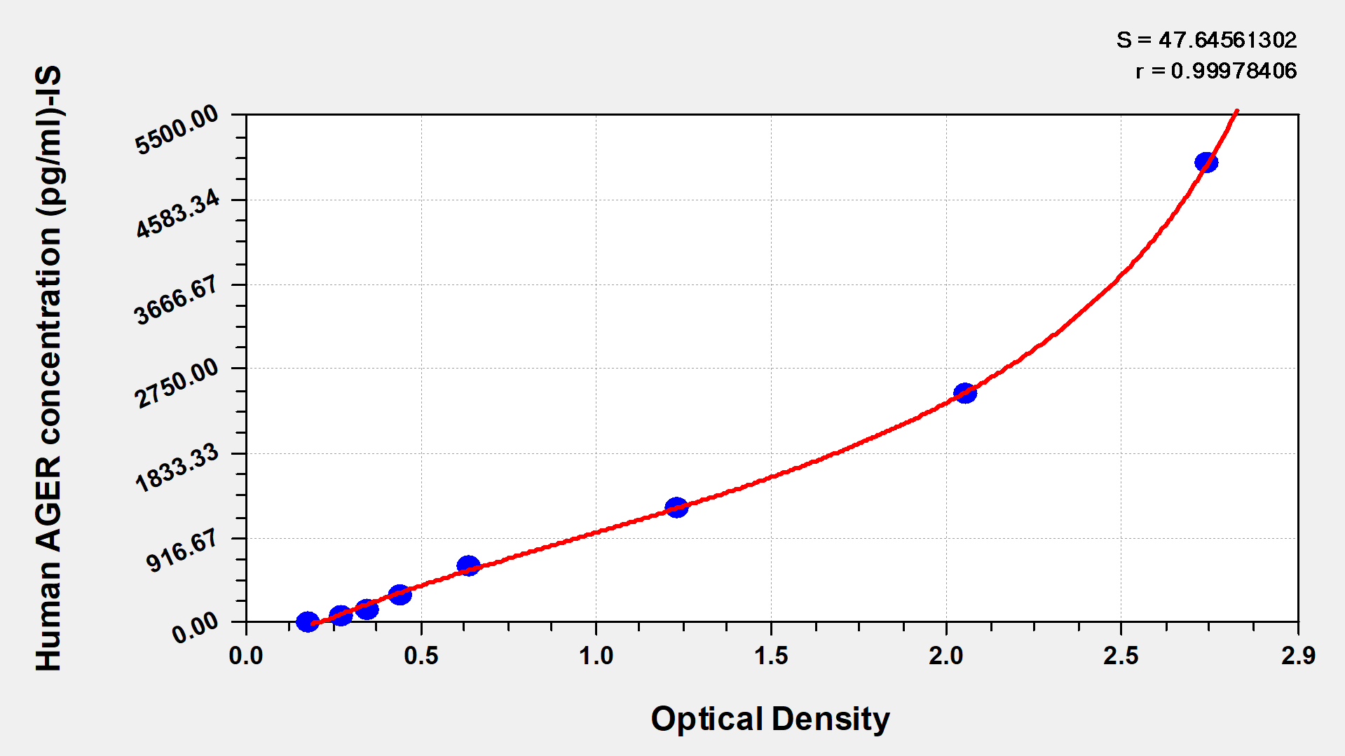 通過線性范圍來計(jì)算出實(shí)際的檢測樣本值,定量試劑盒標(biāo)準(zhǔn)曲線的相關(guān)系數(shù)R大于0.99。以CSB-E07270h(人脂聯(lián)素(ADP)ELISA Kit)為例的標(biāo)準(zhǔn)曲線。