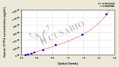 通過線性范圍來計算出實際的檢測樣本值,定量試劑盒標(biāo)準(zhǔn)曲線的相關(guān)系數(shù)R大于0.99。以CSB-E07270h(人脂聯(lián)素(ADP)ELISA Kit)為例的標(biāo)準(zhǔn)曲線。