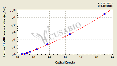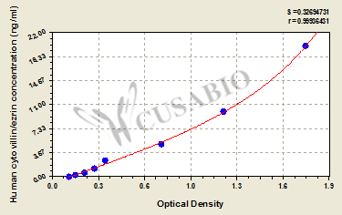 通過線性范圍來計算出實際的檢測樣本值,定量試劑盒標準曲線的相關(guān)系數(shù)R大于0.99。以CSB-E07270h(人脂聯(lián)素(ADP)ELISA Kit)為例的標準曲線。
