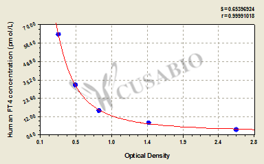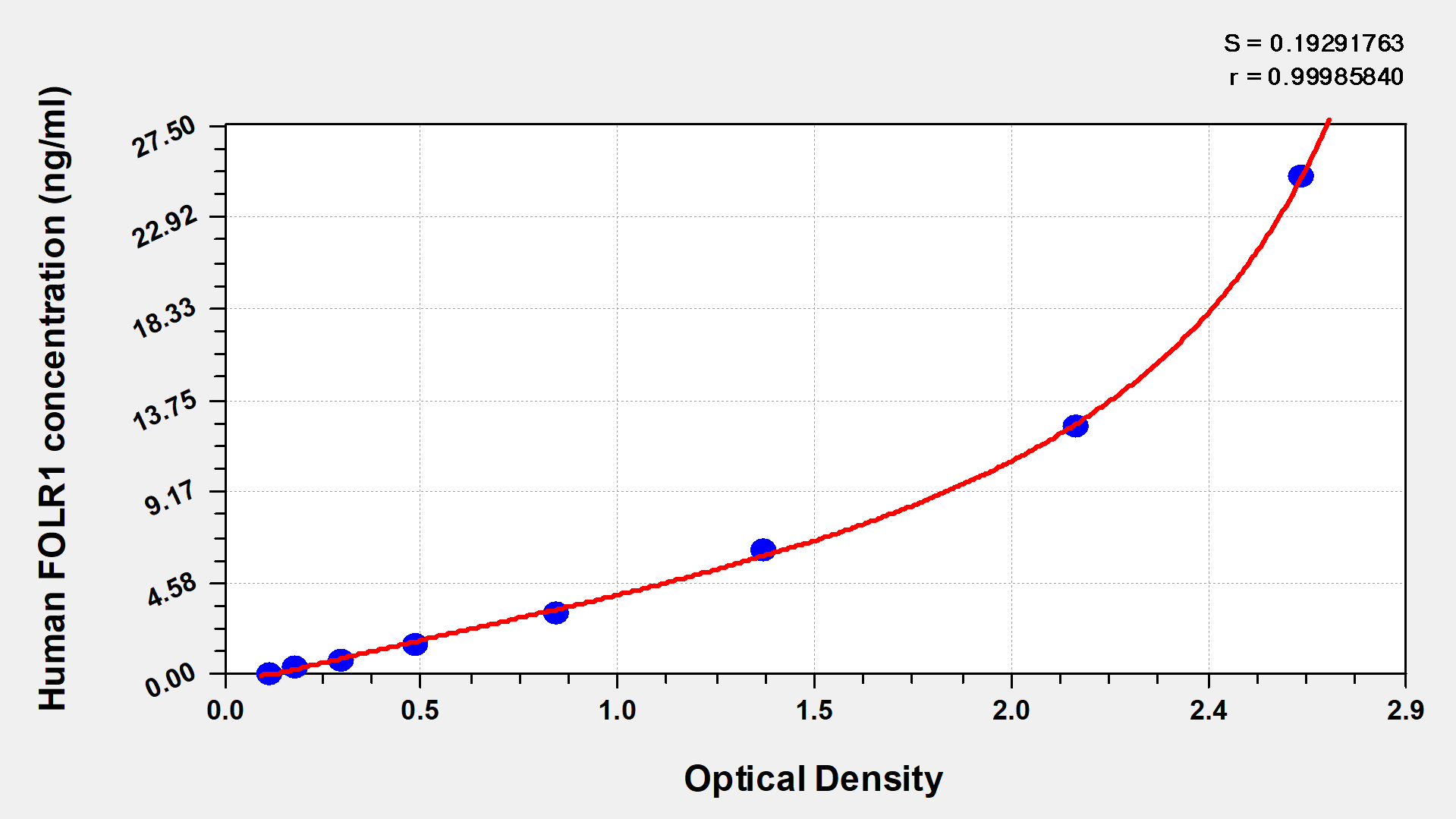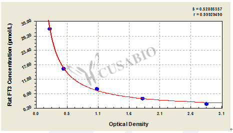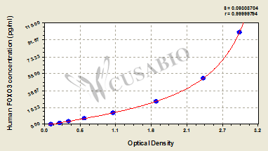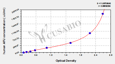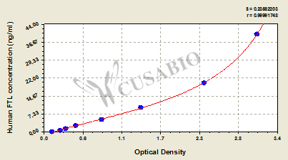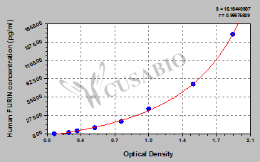 通過線性范圍來計算出實際的檢測樣本值,定量試劑盒標準曲線的相關系數(shù)R大于0.99。以CSB-E07270h(人脂聯(lián)素(ADP)ELISA Kit)為例的標準曲線。