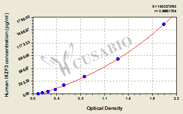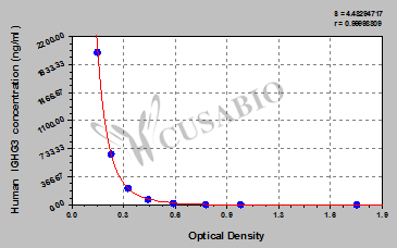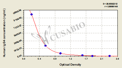 通過線性范圍來計算出實際的檢測樣本值,定量試劑盒標準曲線的相關系數(shù)R大于0.99。以CSB-E07270h(人脂聯(lián)素(ADP)ELISA Kit)為例的標準曲線。