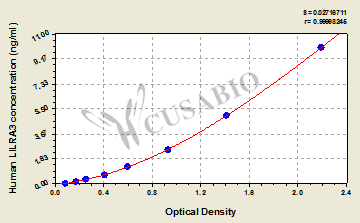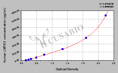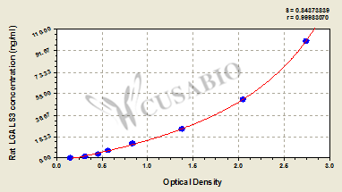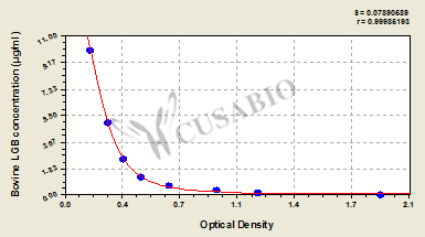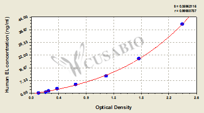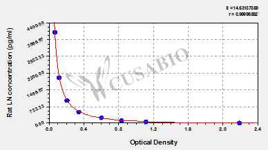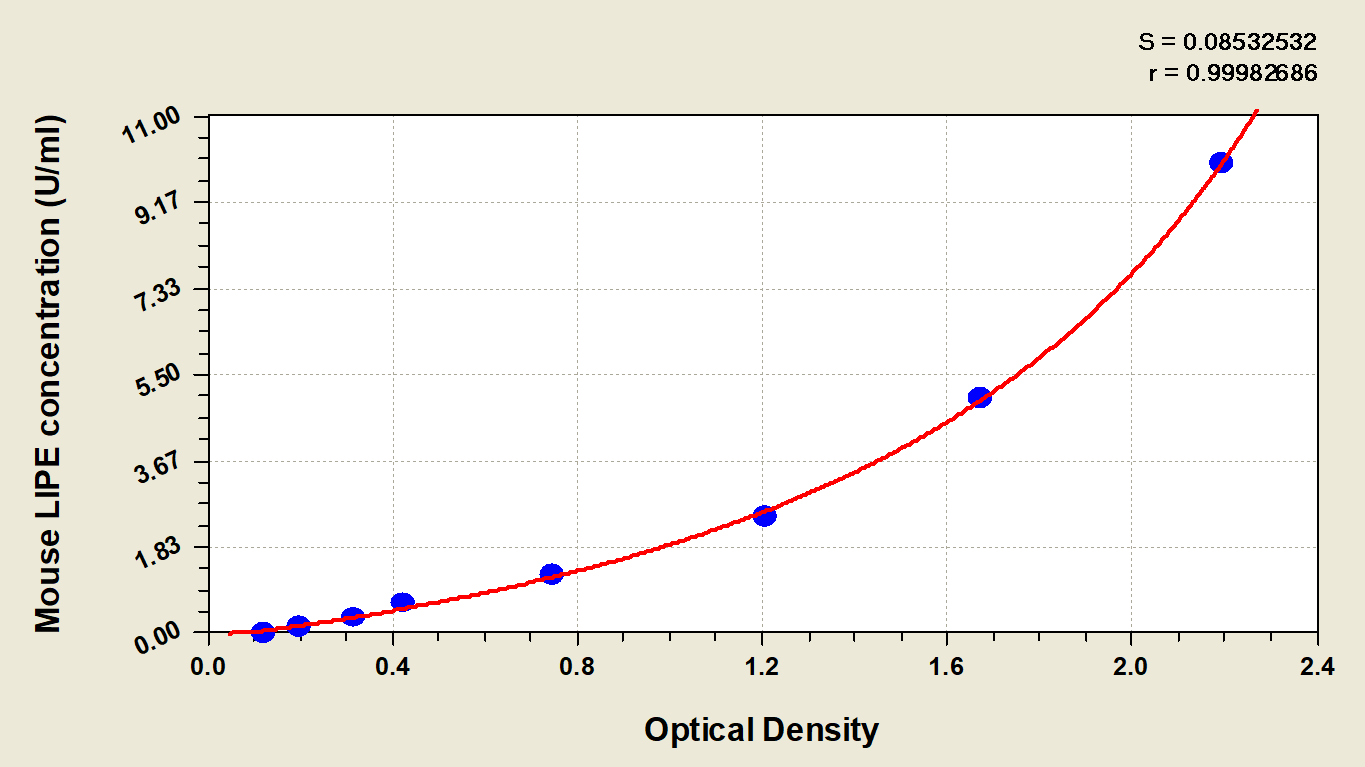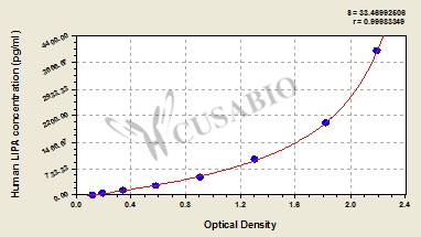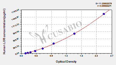 通過(guò)線性范圍來(lái)計(jì)算出實(shí)際的檢測(cè)樣本值,定量試劑盒標(biāo)準(zhǔn)曲線的相關(guān)系數(shù)R大于0.99。以CSB-E07270h(人脂聯(lián)素(ADP)ELISA Kit)為例的標(biāo)準(zhǔn)曲線。