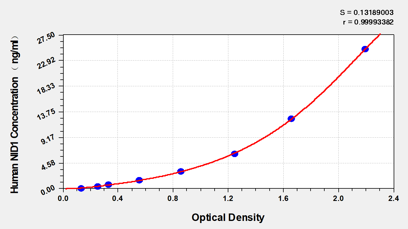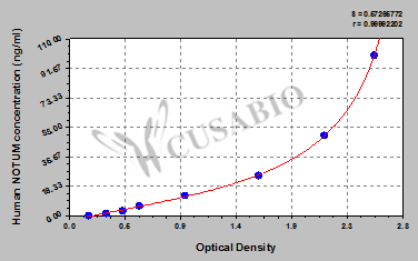 通過(guò)線性范圍來(lái)計(jì)算出實(shí)際的檢測(cè)樣本值,定量試劑盒標(biāo)準(zhǔn)曲線的相關(guān)系數(shù)R大于0.99。以CSB-E07270h(人脂聯(lián)素(ADP)ELISA Kit)為例的標(biāo)準(zhǔn)曲線。