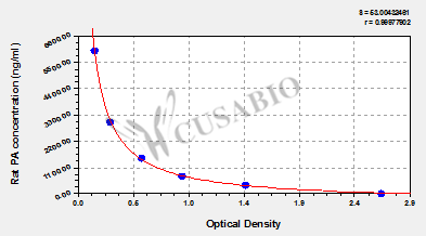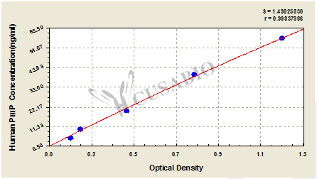 通過線性范圍來計算出實際的檢測樣本值,定量試劑盒標準曲線的相關(guān)系數(shù)R大于0.99。以CSB-E07270h(人脂聯(lián)素(ADP)ELISA Kit)為例的標準曲線。