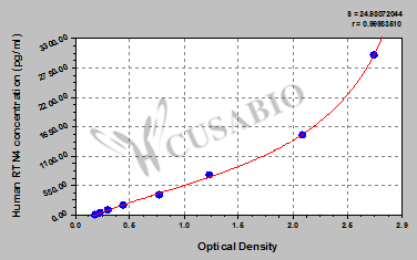 通過線性范圍來計(jì)算出實(shí)際的檢測樣本值,定量試劑盒標(biāo)準(zhǔn)曲線的相關(guān)系數(shù)R大于0.99。以CSB-E07270h(人脂聯(lián)素(ADP)ELISA Kit)為例的標(biāo)準(zhǔn)曲線。