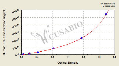 通過線性范圍來計(jì)算出實(shí)際的檢測(cè)樣本值,定量試劑盒標(biāo)準(zhǔn)曲線的相關(guān)系數(shù)R大于0.99。以CSB-E07270h(人脂聯(lián)素(ADP)ELISA Kit)為例的標(biāo)準(zhǔn)曲線。