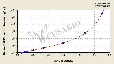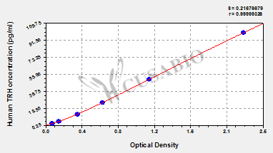 通過線性范圍來計算出實際的檢測樣本值,定量試劑盒標準曲線的相關系數(shù)R大于0.99。以CSB-E07270h(人脂聯(lián)素(ADP)ELISA Kit)為例的標準曲線。