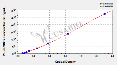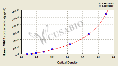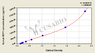 通過線性范圍來計算出實際的檢測樣本值,定量試劑盒標準曲線的相關(guān)系數(shù)R大于0.99。以CSB-E07270h(人脂聯(lián)素(ADP)ELISA Kit)為例的標準曲線。