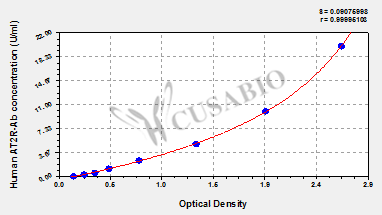 通過線性范圍來計算出實際的檢測樣本值,定量試劑盒標(biāo)準曲線的相關(guān)系數(shù)R大于0.99。以CSB-E07270h(人脂聯(lián)素(ADP)ELISA Kit)為例的標(biāo)準曲線。