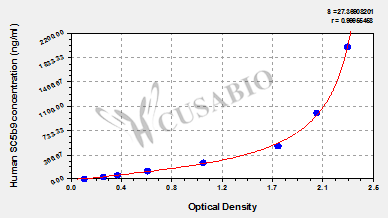通過線性范圍來計算出實際的檢測樣本值,定量試劑盒標準曲線的相關系數(shù)R大于0.99。以CSB-E07270h(人脂聯(lián)素(ADP)ELISA Kit)為例的標準曲線。