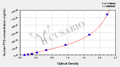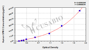 通過線性范圍來計(jì)算出實(shí)際的檢測(cè)樣本值,定量試劑盒標(biāo)準(zhǔn)曲線的相關(guān)系數(shù)R大于0.99。以CSB-E07270h(人脂聯(lián)素(ADP)ELISA Kit)為例的標(biāo)準(zhǔn)曲線。