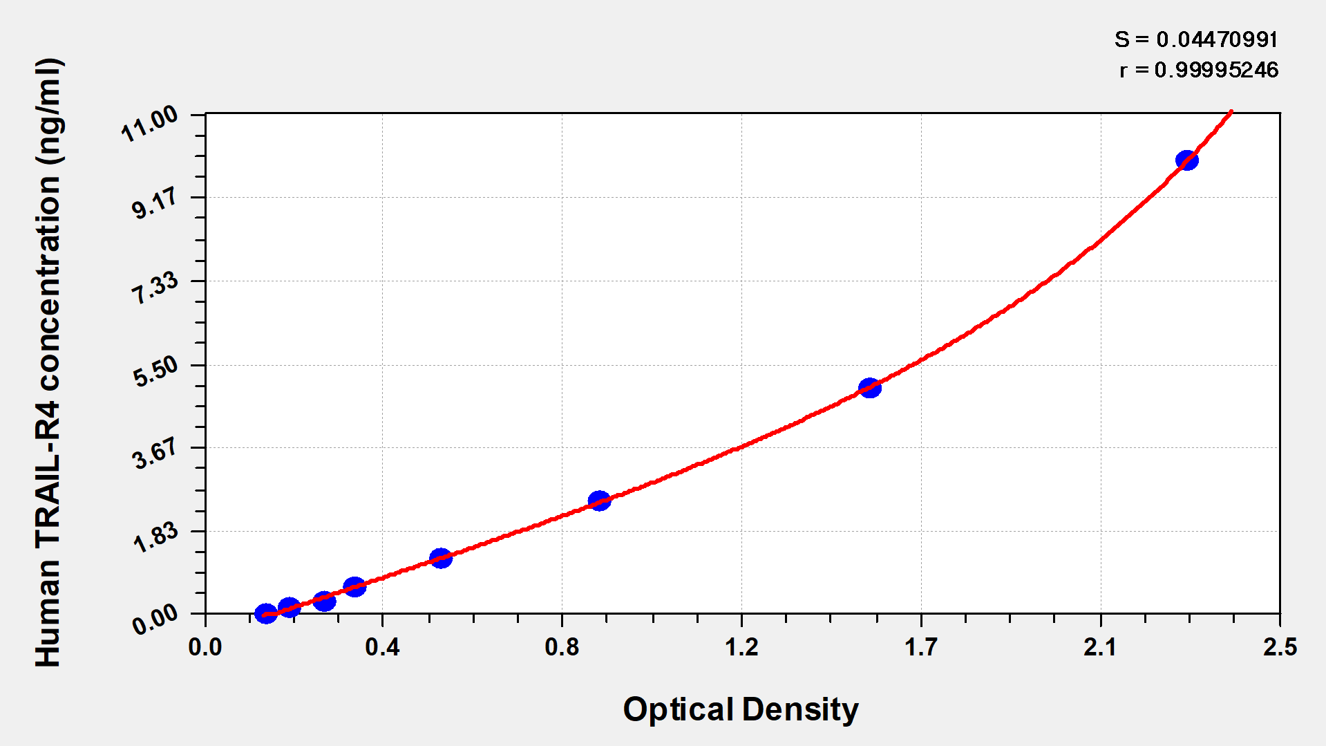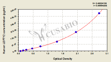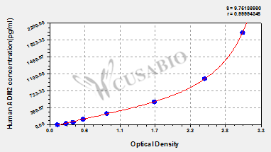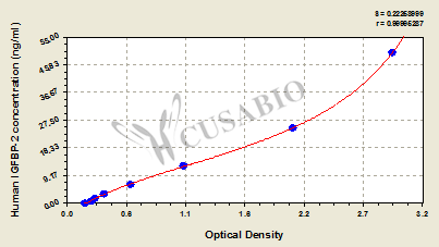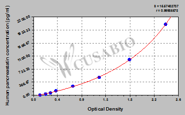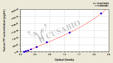 通過線性范圍來計算出實際的檢測樣本值,定量試劑盒標準曲線的相關系數(shù)R大于0.99。以CSB-E07270h(人脂聯(lián)素(ADP)ELISA Kit)為例的標準曲線。