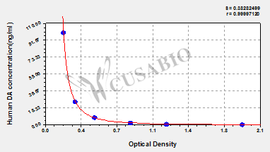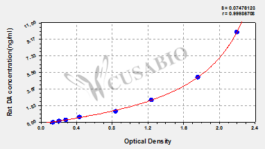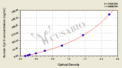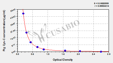 通過線性范圍來計算出實際的檢測樣本值,定量試劑盒標(biāo)準(zhǔn)曲線的相關(guān)系數(shù)R大于0.99。以CSB-E07270h(人脂聯(lián)素(ADP)ELISA Kit)為例的標(biāo)準(zhǔn)曲線。