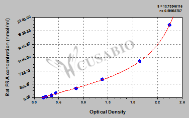 通過線性范圍來計(jì)算出實(shí)際的檢測(cè)樣本值,定量試劑盒標(biāo)準(zhǔn)曲線的相關(guān)系數(shù)R大于0.99。以CSB-E07270h(人脂聯(lián)素(ADP)ELISA Kit)為例的標(biāo)準(zhǔn)曲線。
