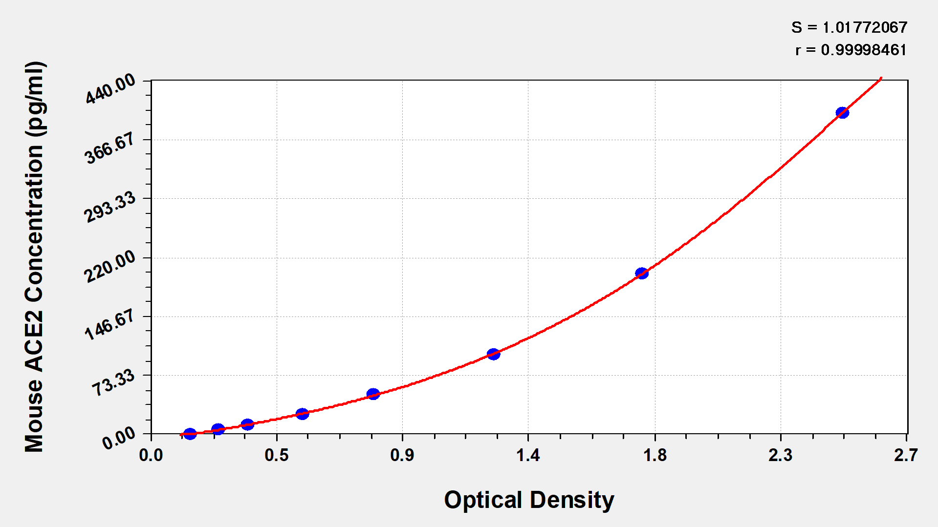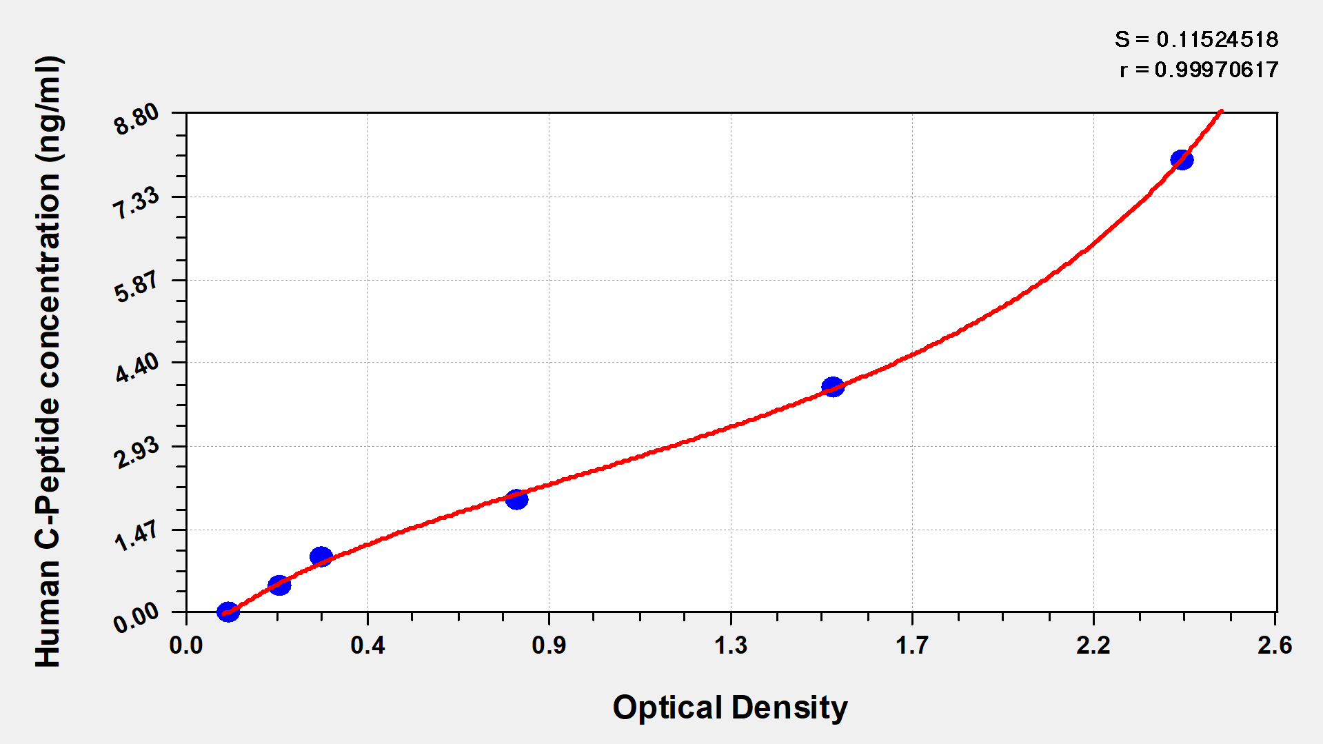 通過線性范圍來計算出實際的檢測樣本值,定量試劑盒標(biāo)準(zhǔn)曲線的相關(guān)系數(shù)R大于0.99。以CSB-E07270h(人脂聯(lián)素(ADP)ELISA Kit)為例的標(biāo)準(zhǔn)曲線。