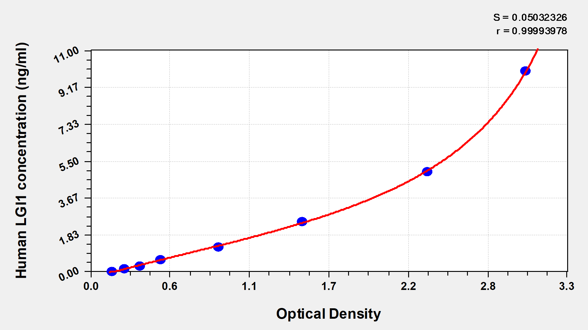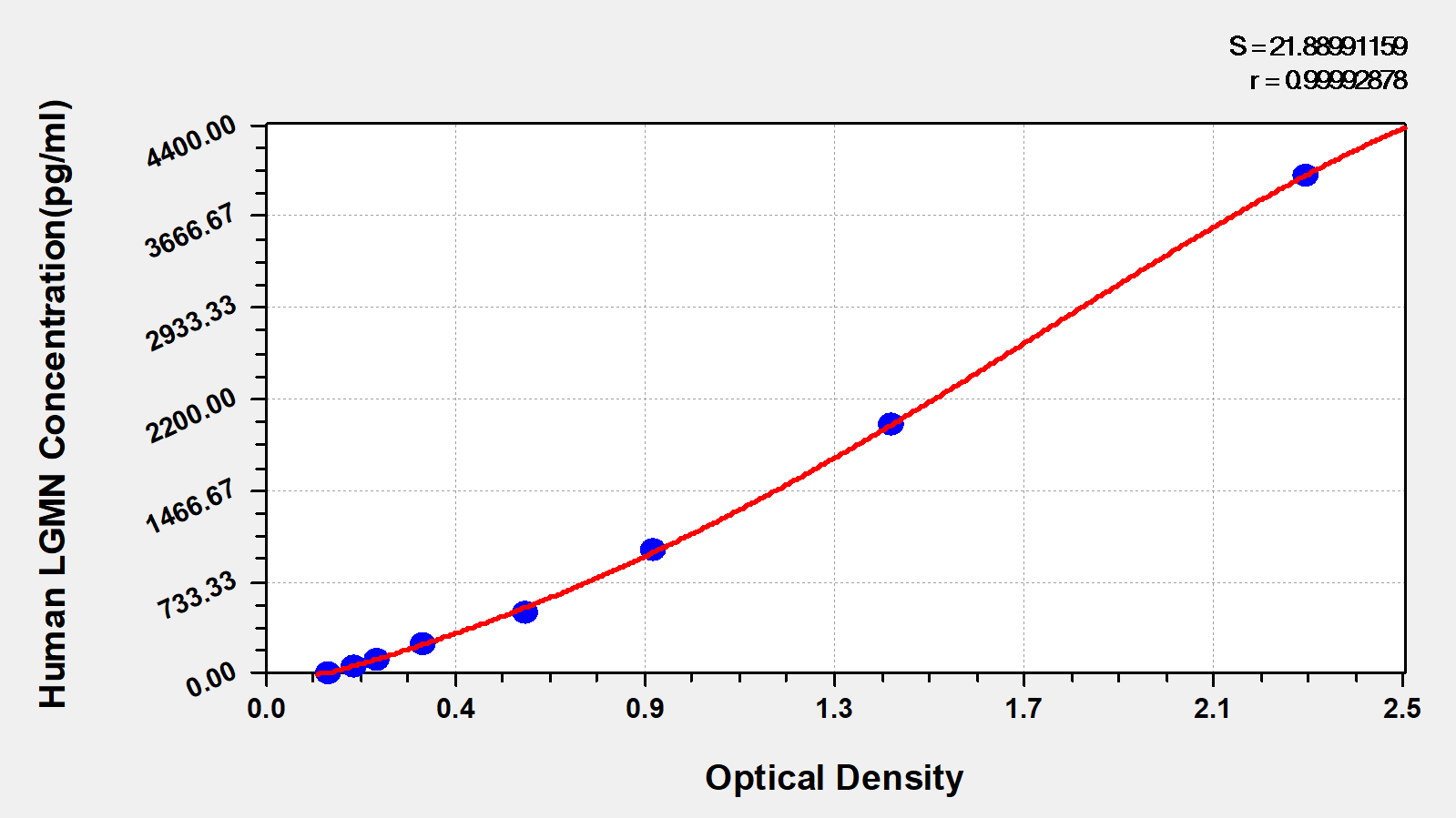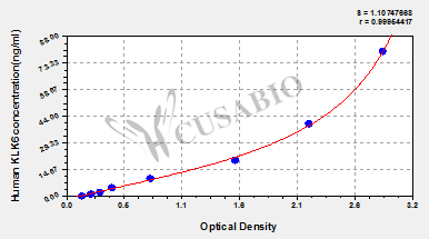 通過線性范圍來計算出實際的檢測樣本值,定量試劑盒標準曲線的相關系數(shù)R大于0.99。以CSB-E07270h(人脂聯(lián)素(ADP)ELISA Kit)為例的標準曲線。