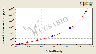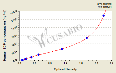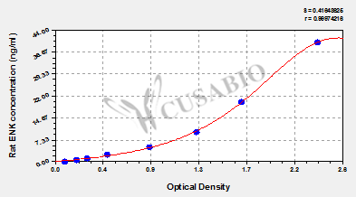 通過線性范圍來計算出實際的檢測樣本值,定量試劑盒標準曲線的相關(guān)系數(shù)R大于0.99。以CSB-E07270h(人脂聯(lián)素(ADP)ELISA Kit)為例的標準曲線。