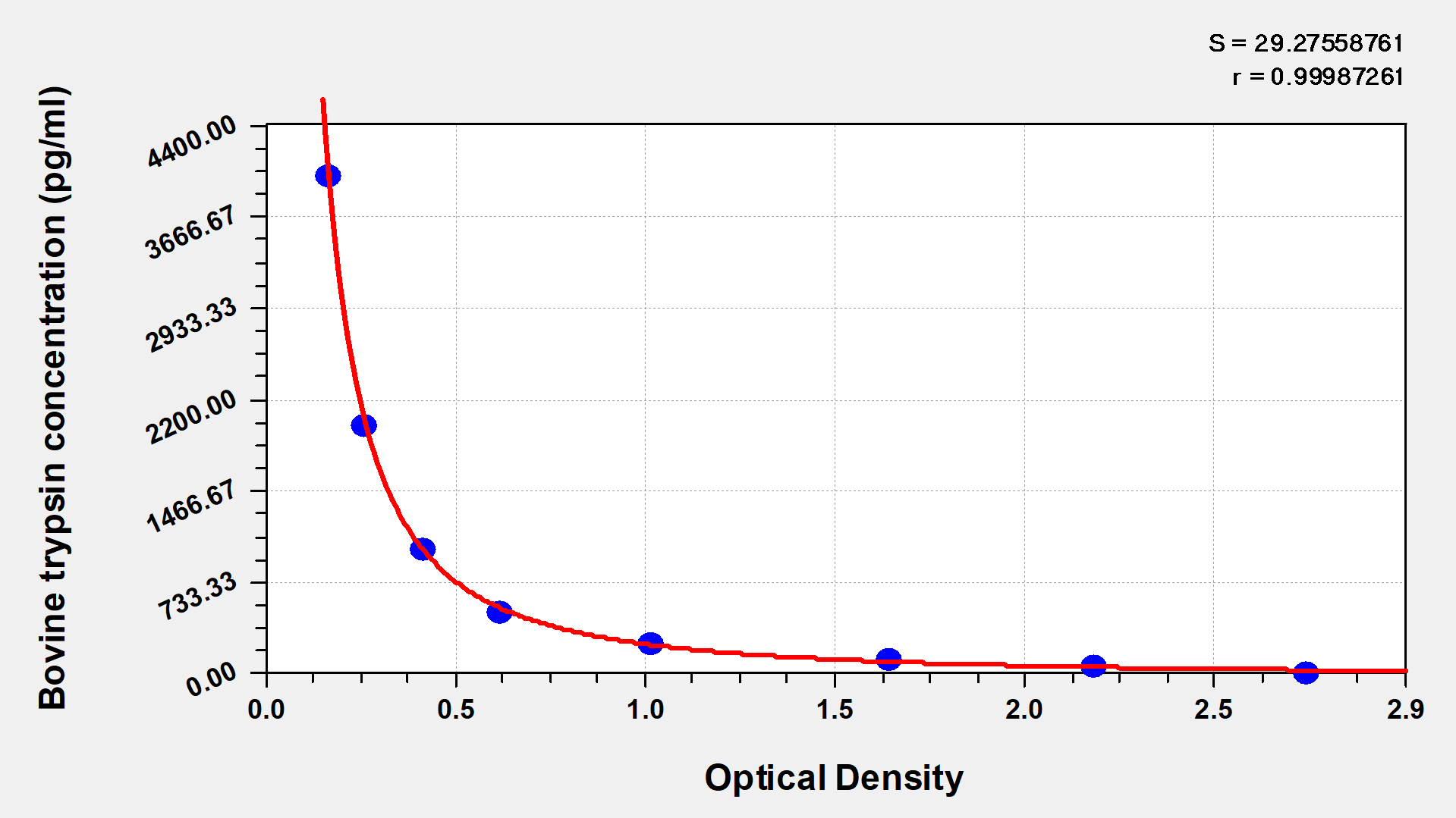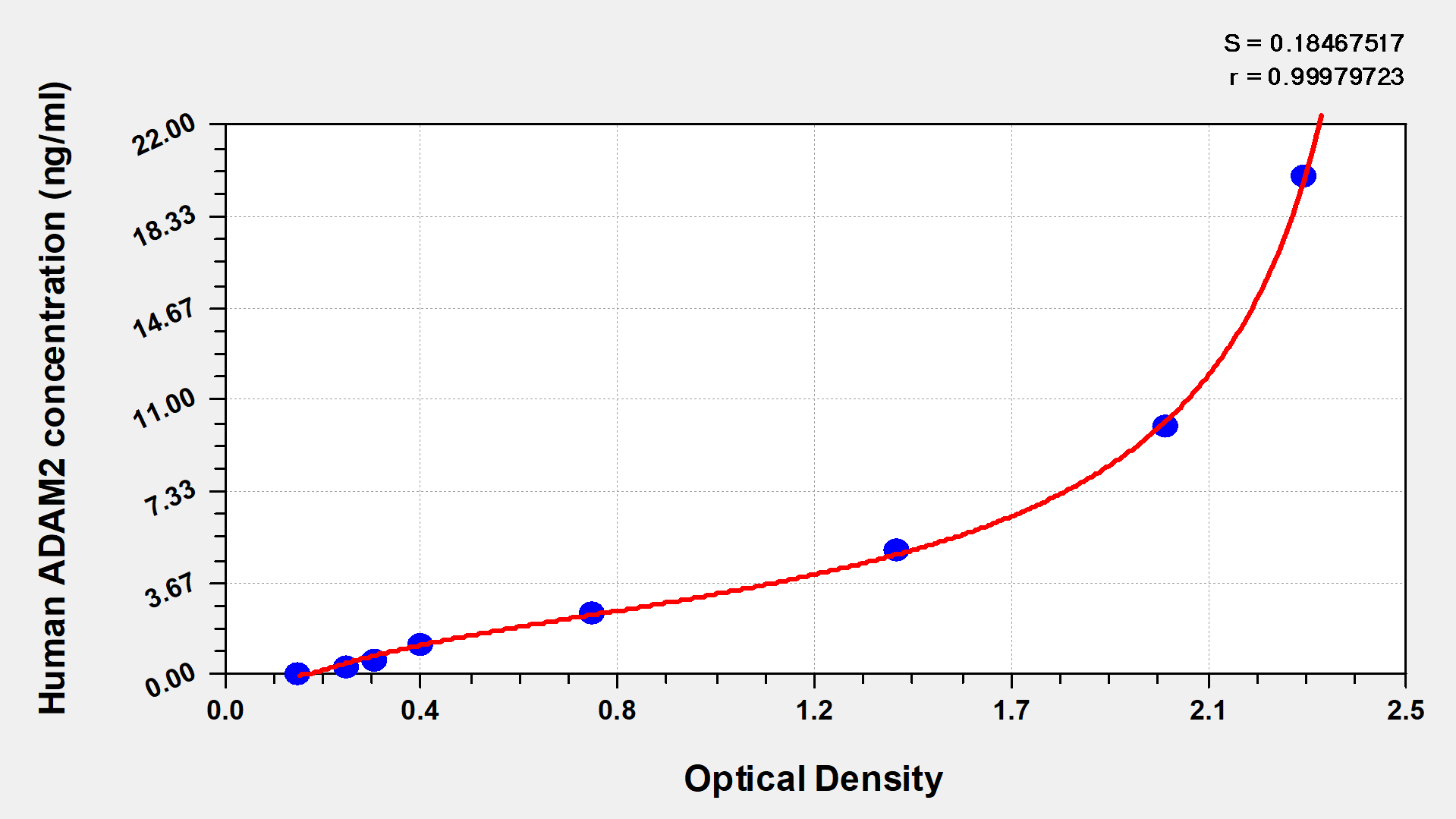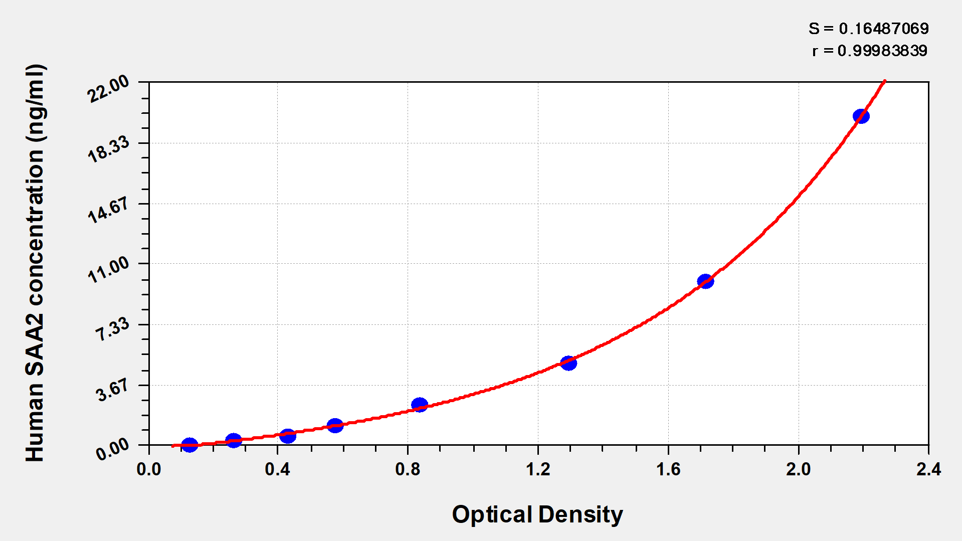 通過線性范圍來計算出實際的檢測樣本值,定量試劑盒標(biāo)準(zhǔn)曲線的相關(guān)系數(shù)R大于0.99。以CSB-E07270h(人脂聯(lián)素(ADP)ELISA Kit)為例的標(biāo)準(zhǔn)曲線。