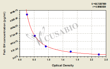 通過線性范圍來計算出實際的檢測樣本值,定量試劑盒標準曲線的相關系數(shù)R大于0.99。以CSB-E07270h(人脂聯(lián)素(ADP)ELISA Kit)為例的標準曲線。