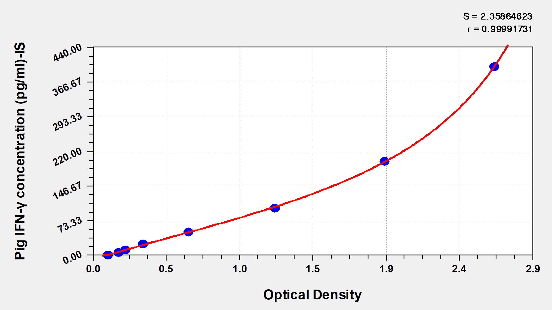 最低檢測限是靈敏度的測試指標。由使用的抗體效價等決定的,在研發(fā)過程中,一般會優(yōu)化保證高靈敏度、低背景的檢測結果從而大大提高試劑盒的靈敏度。檢測限越低,靈敏度越高。通過將零標準重復獲得的平均 O.D. 加上3個標準偏差來確定靈敏度。