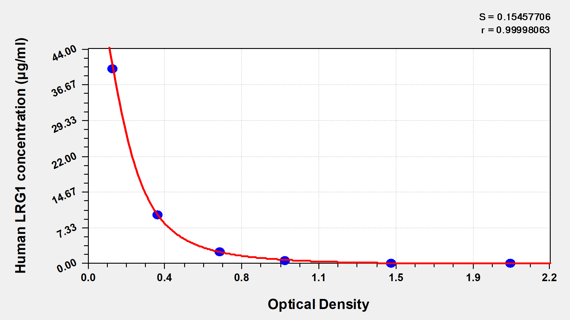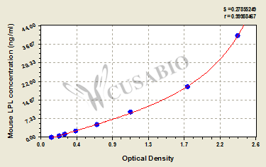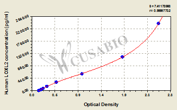 通過線性范圍來計算出實際的檢測樣本值,定量試劑盒標準曲線的相關(guān)系數(shù)R大于0.99。以CSB-E07270h(人脂聯(lián)素(ADP)ELISA Kit)為例的標準曲線。