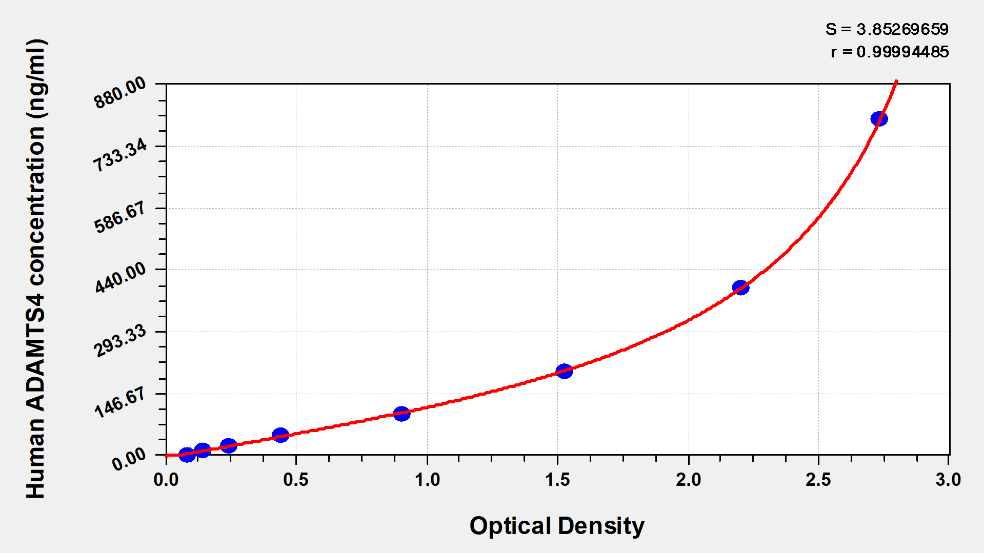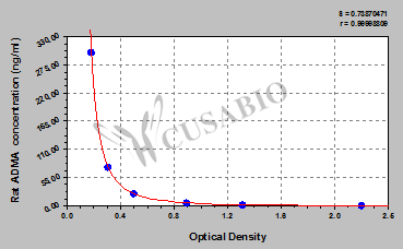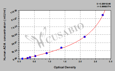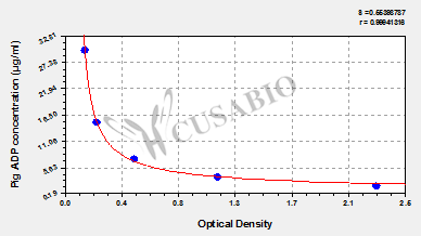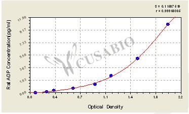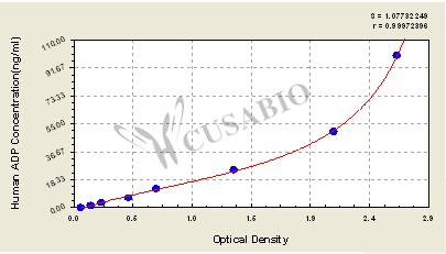 通過(guò)線(xiàn)性范圍來(lái)計(jì)算出實(shí)際的檢測(cè)樣本值,定量試劑盒標(biāo)準(zhǔn)曲線(xiàn)的相關(guān)系數(shù)R大于0.99。以CSB-E07270h(人脂聯(lián)素(ADP)ELISA Kit)為例的標(biāo)準(zhǔn)曲線(xiàn)。