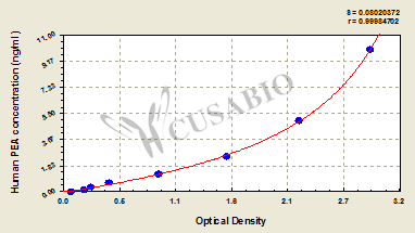 通過線性范圍來計(jì)算出實(shí)際的檢測(cè)樣本值,定量試劑盒標(biāo)準(zhǔn)曲線的相關(guān)系數(shù)R大于0.99。以CSB-E07270h(人脂聯(lián)素(ADP)ELISA Kit)為例的標(biāo)準(zhǔn)曲線。
