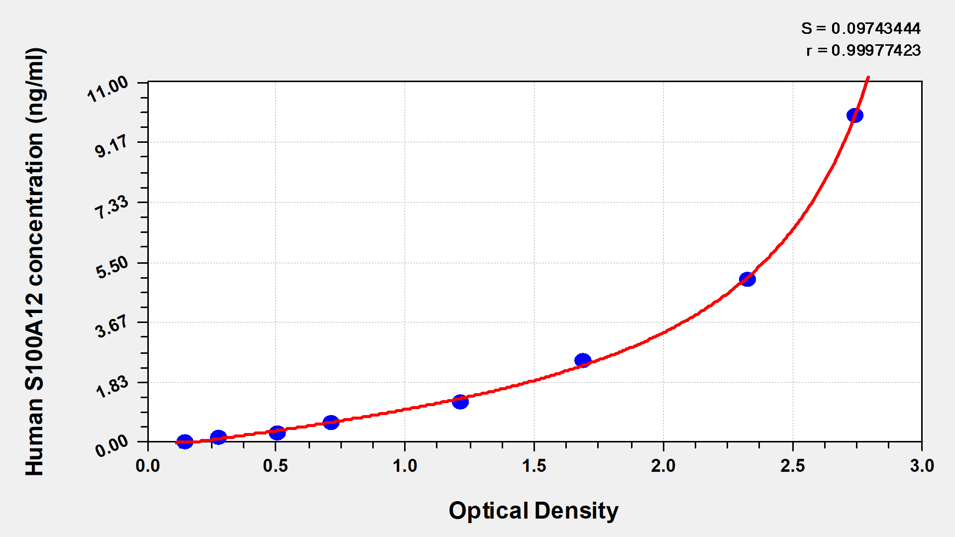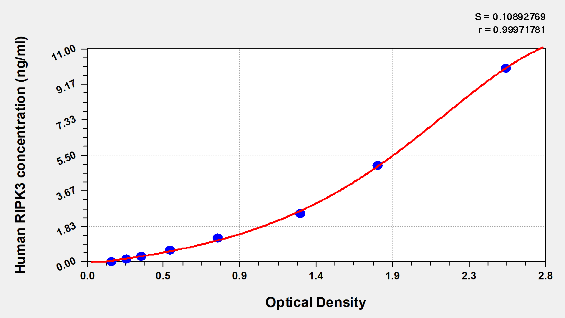 通過線性范圍來計(jì)算出實(shí)際的檢測(cè)樣本值,定量試劑盒標(biāo)準(zhǔn)曲線的相關(guān)系數(shù)R大于0.99。以CSB-E07270h(人脂聯(lián)素(ADP)ELISA Kit)為例的標(biāo)準(zhǔn)曲線。
