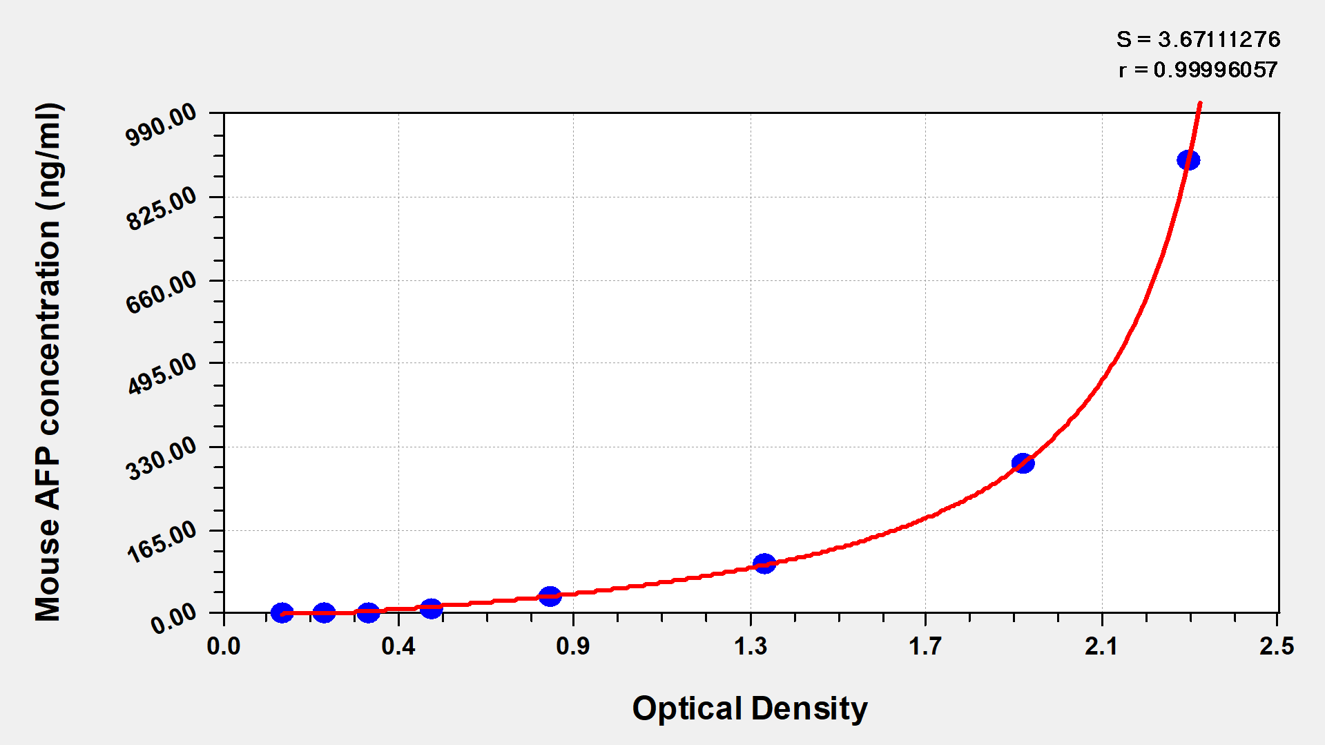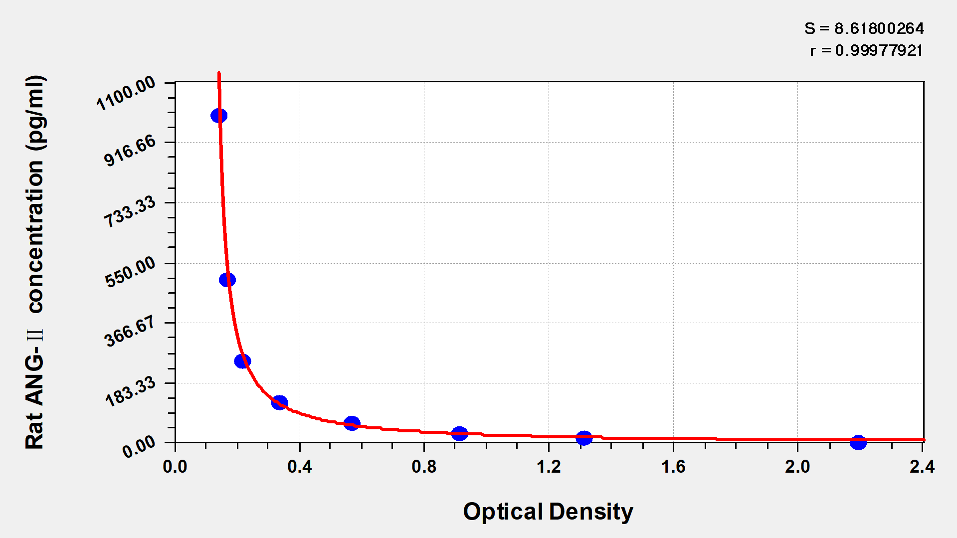 通過線性范圍來計算出實際的檢測樣本值,定量試劑盒標(biāo)準(zhǔn)曲線的相關(guān)系數(shù)R大于0.99。以CSB-E07270h(人脂聯(lián)素(ADP)ELISA Kit)為例的標(biāo)準(zhǔn)曲線。
