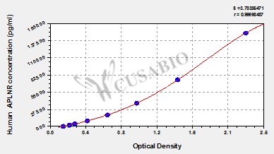 通過線性范圍來計算出實際的檢測樣本值,定量試劑盒標(biāo)準(zhǔn)曲線的相關(guān)系數(shù)R大于0.99。以CSB-E07270h(人脂聯(lián)素(ADP)ELISA Kit)為例的標(biāo)準(zhǔn)曲線。